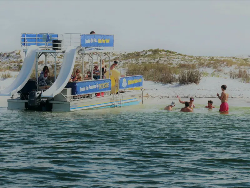 Did you plan your trip to Destin, FL with some much needed R & R on your mind? When you think of vacation, do you picture sitting on the beach listening to the waves roll in, soft white sand between your toes, a cold beverage in hand? Can you imagine yourself cruising in crystal clear water along a beach, sun shining bright warming your skin? Well you can check the box for all of the above by renting a pontoon in Destin from Dockside Watersports!